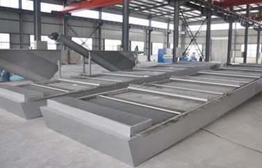 鏈板式回轉(zhuǎn)式格柵除污機為粗格柵,又稱雨水格柵、反撈式格柵,是一種用于清除水中較大固體懸浮物的大型粗格柵設(shè)備,本裝置可以連續(xù)自動清除液體中的固體懸浮物,設(shè)計合理、結(jié)構(gòu)簡單、運轉(zhuǎn)安全、可靠、自動化程度高,可廣泛應(yīng)用于城市污水處理、自來水廠取水口、雨水泵站、發(fā)電廠冷卻水取水口等大流量的水處理場所。設(shè)備機架結(jié)構(gòu)參照了回轉(zhuǎn)式格柵除污機的優(yōu)點,采用與眾不同的工作原理,即耙齒鏈在柵條前后作回轉(zhuǎn)運動,到耙齒運轉(zhuǎn)到柵條的迎水面時,即插入柵條縫隙中由下往上作清撈動作。耙齒鏈采用封閉式,不讓雜物侵入,使設(shè)備運轉(zhuǎn)更加平穩(wěn)。設(shè)備安裝時整機吊裝,只需在集水井兩側(cè)的地坪上預(yù)埋兩塊鋼板,土建簡單節(jié)約,安裝維修方便。